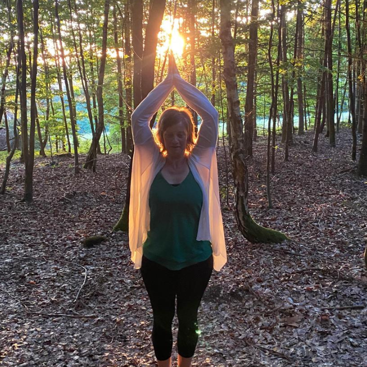 Stephanie Schlosser begleitet mit dem Mantra-Singen.