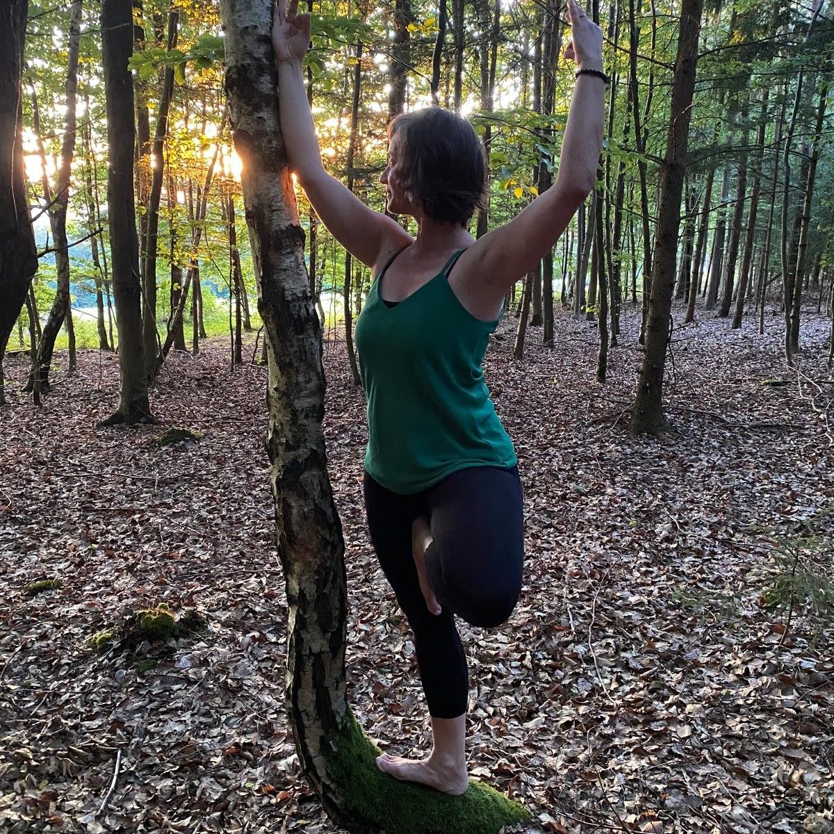 Erlebe Yoga inmitten der beruhigenden Kraft des Waldes.